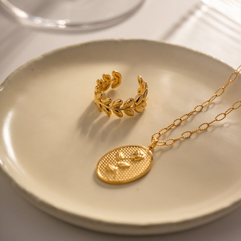 Este elegante anillo de diseño abierto está inspirado en la delicadeza de las hojas, evocando un estilo natural y sofisticado. Su acabado dorado brillante resalta cada detalle orgánico del diseño, aportando textura y profundidad a la pieza. El aro ajustable garantiza comodidad y versatilidad, adaptándose fácilmente a diferentes tallas. Ideal para llevar solo como protagonista o combinado con otros anillos, es un accesorio perfecto para quienes buscan un toque fresco, moderno y atemporal que complemente cualquier look.