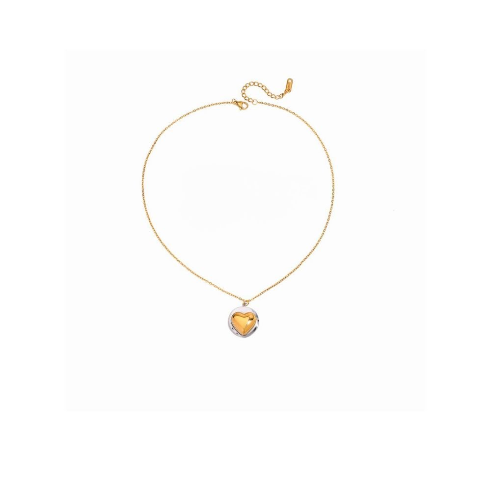 Collar dorado con delicado colgante de corazón bicolor, un diseño elegante y romántico ideal para el día a día.