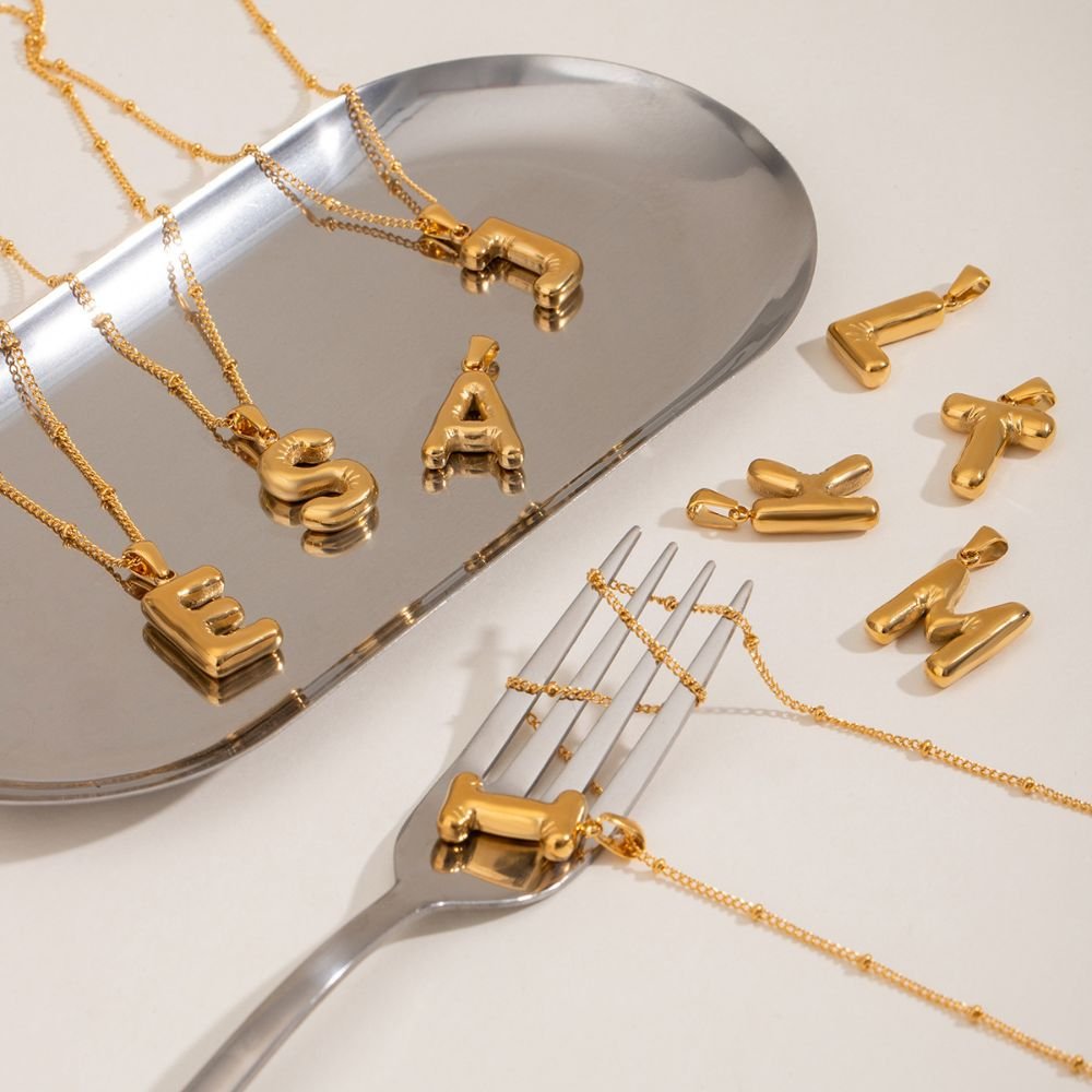Collar dorado de diseño minimalista con delicado dije en forma de letras. Su acabado pulido aporta un brillo elegante y moderno, ideal para llevar a diario o como detalle especial en ocasiones únicas. La cadena fina realza el protagonismo del colgante, creando una pieza personalizada, versátil y atemporal. Perfecto para expresar identidad, iniciales especiales o regalar con significado.
